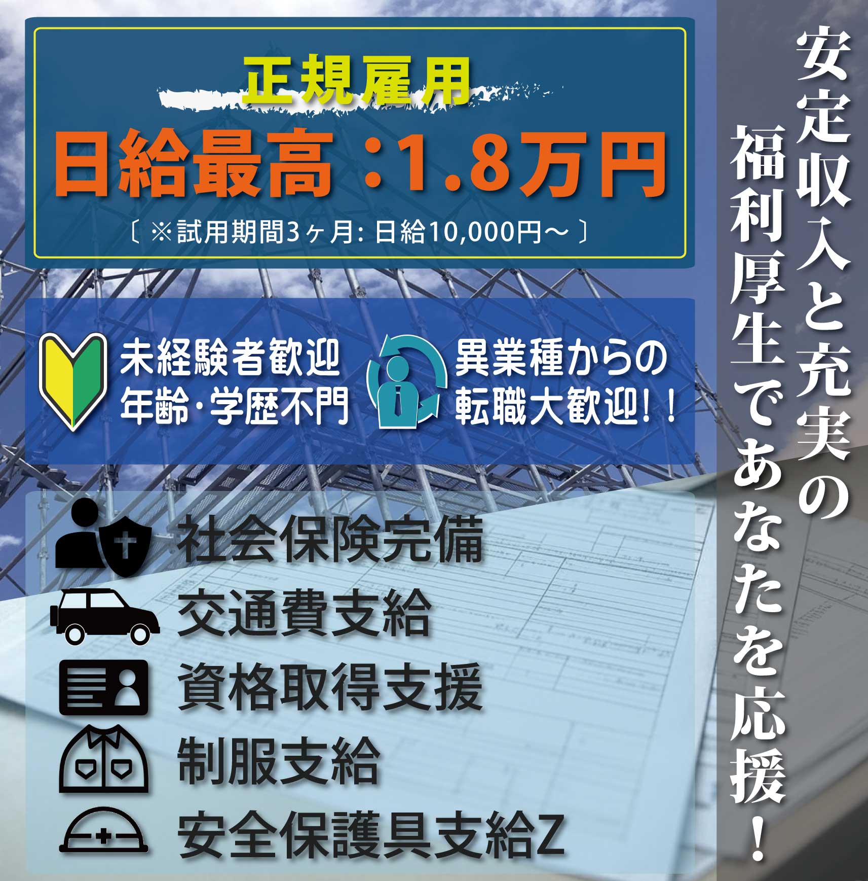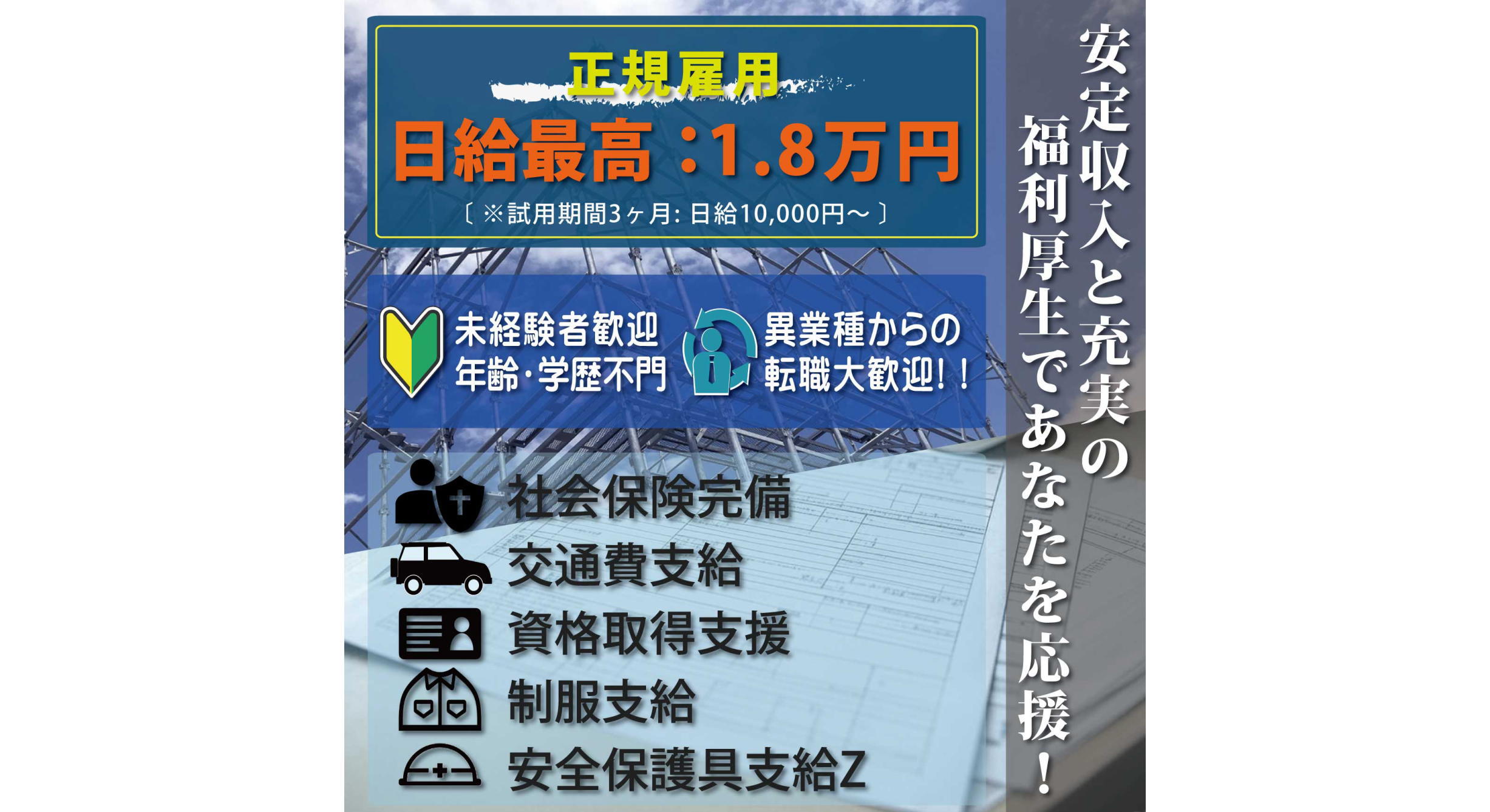 日給1.8万円も可能!社会保険完備で安定収入!